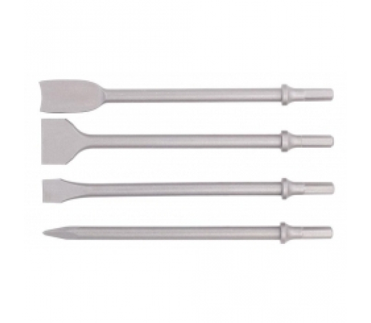 Sada 4 sekáčů - špičatý 250 mm, plochý 19 × 250 mm, plochý široký 40 × 250 mm, půlkulatý 30 × 250 mm.