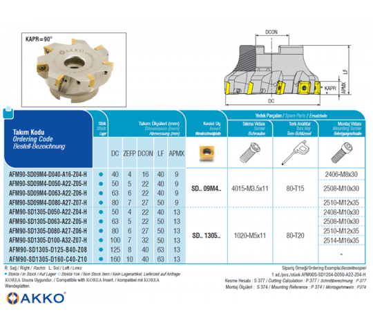 Fréza nástrčná čelní 90° AFM90-SD09M4-D080-A27-Z07-H